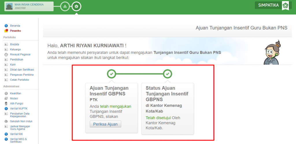 Simpatika telah menyediakan fitur Ajuan Tunjangan Insentif yang diberikan kepada guru bukan PNS yang bertugas pada madrasah.