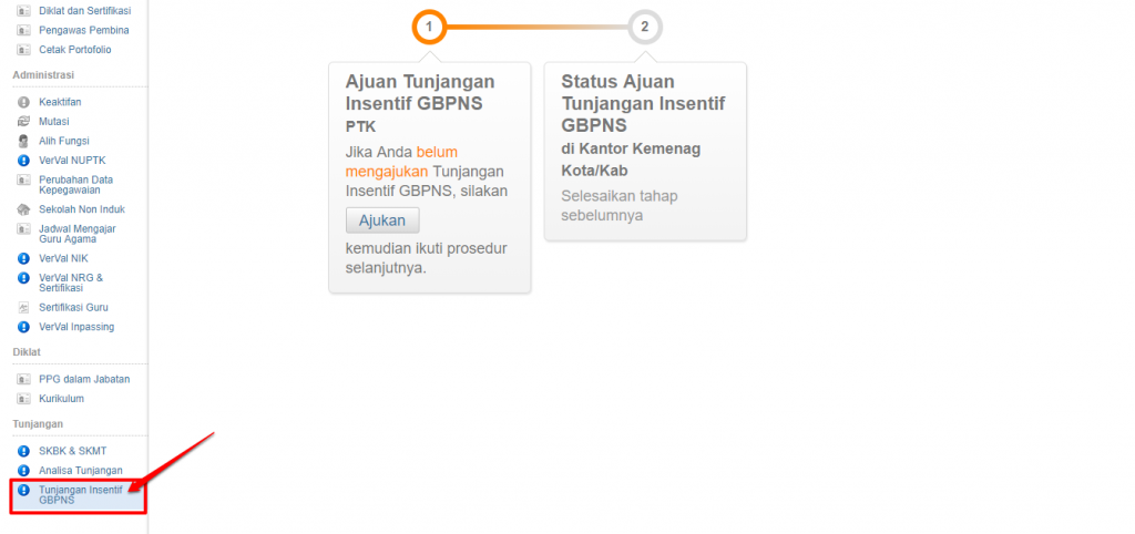 Bagi PTK yang memenuhi syarat, silakan ikuti langkah-langkah berikut untuk dapat mengajukan tunjangan insentif GBPNS melalui akun Simpatika masing-masing :