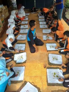 Selesai menerima pengarahan, siswa-siswa diperkanankan untuk mewarnai batik yang sudah diberi motif pemalaman didepannya. Siswa sangat antusias mewarnai bahan batik masing-masing. Warna ditawarkan oleh pihak penyelenggara sehingga siswa mewarnai dengan warna yang disukai.